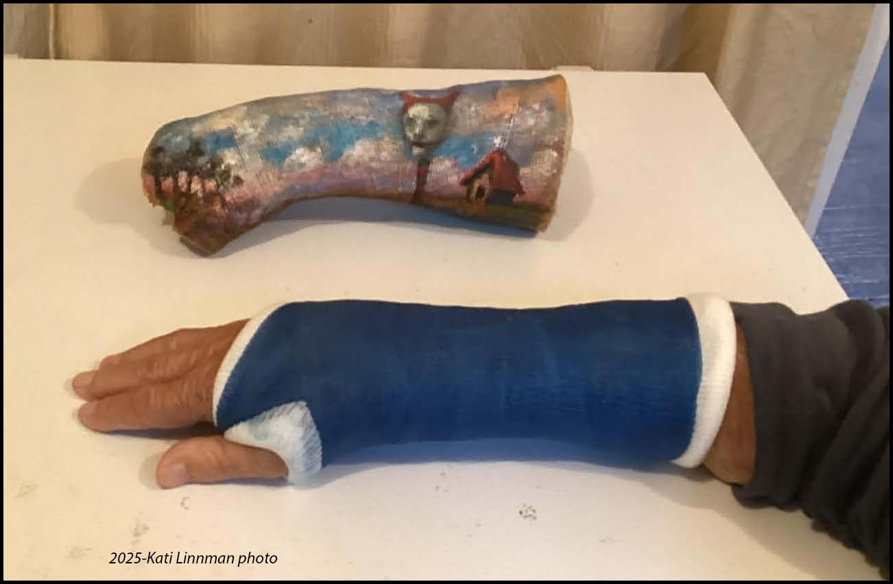 The first time I broke my wrist I spent some enjoyable time with David Kilmartin as he painted the cast. This time, no David, but an expert cast maker gave me a choice of what seemed to be an endless number of colours. I chose blue.