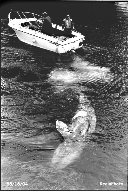 At the Denman Island Ferry landing. Whale was towed away for dissection. 1988
