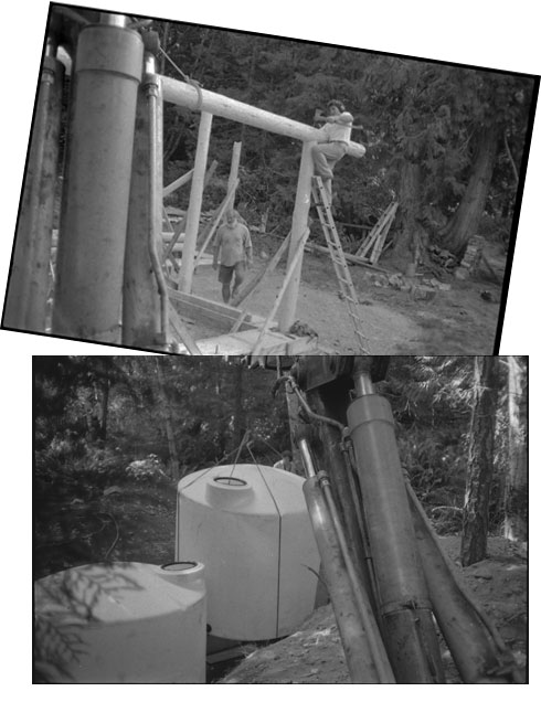 The Backhoe was having serious problems, so that winter we hired a mechanic and his two sons to come up to Hornby, stay at Ted’s summer place and fix the thing. They spent a month taking the whole damn thing apart then persuaded us that we needed to send the machine to the mechanics place in Victoria.